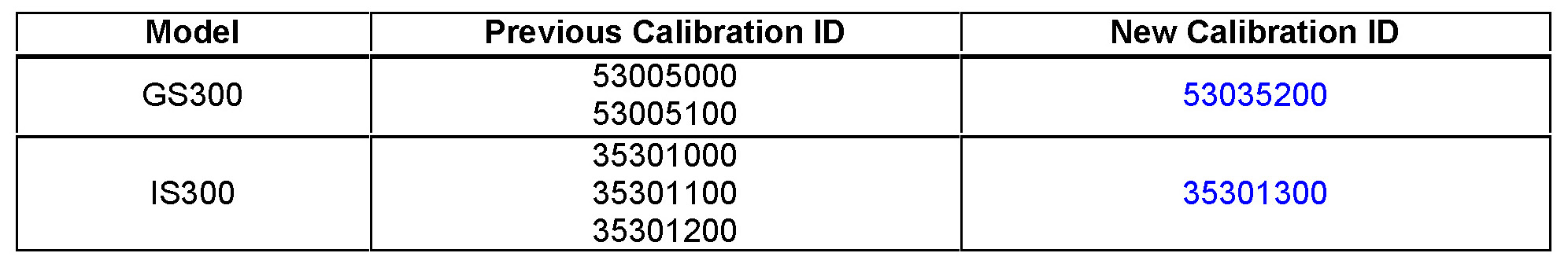 Under certain driving conditions, some 2001 model year GS 300 and IS 300 vehicles equipped with an automatic transmission may exhibit a harsh 2-3 shift during acceleration with light throttle input. A revised ECM calibration file has been developed for the ECM (SAE term Powertrain Control Module/PCM) to improve this condition.