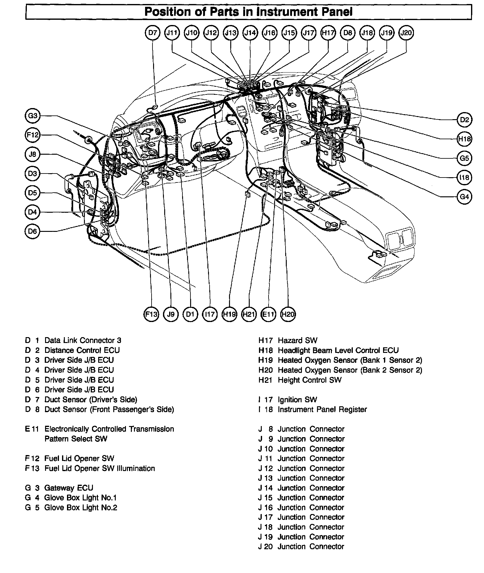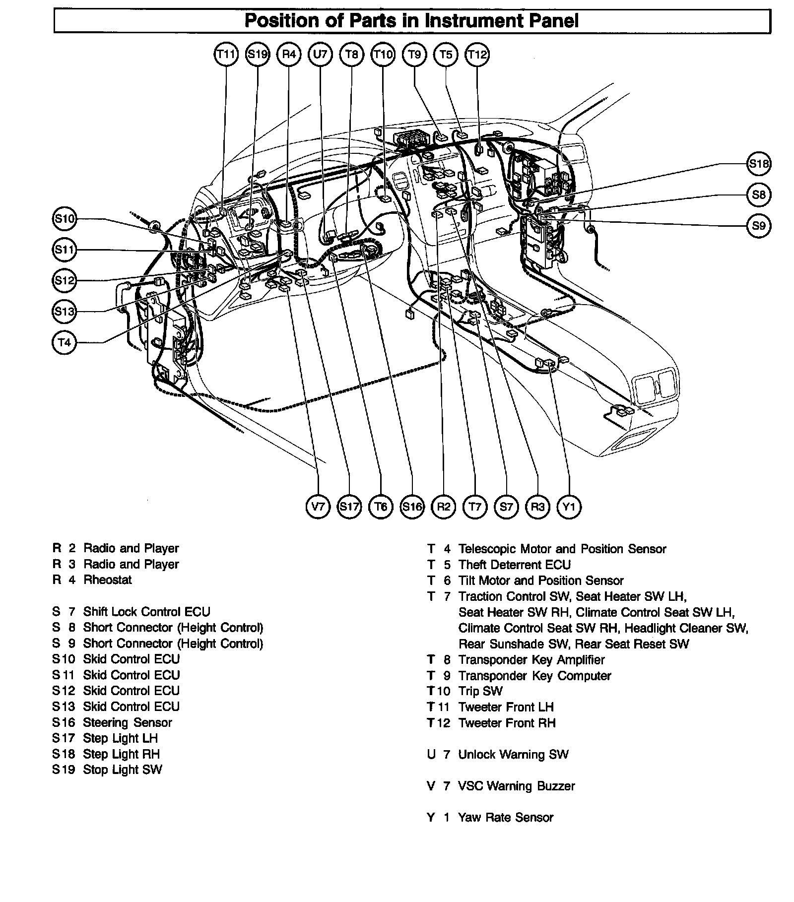 Position Of Parts In Instrument Panel (Part 1):