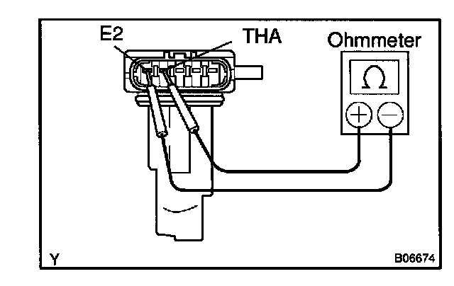 Using an ohmmeter, measure the resistance between terminals THA and E2.