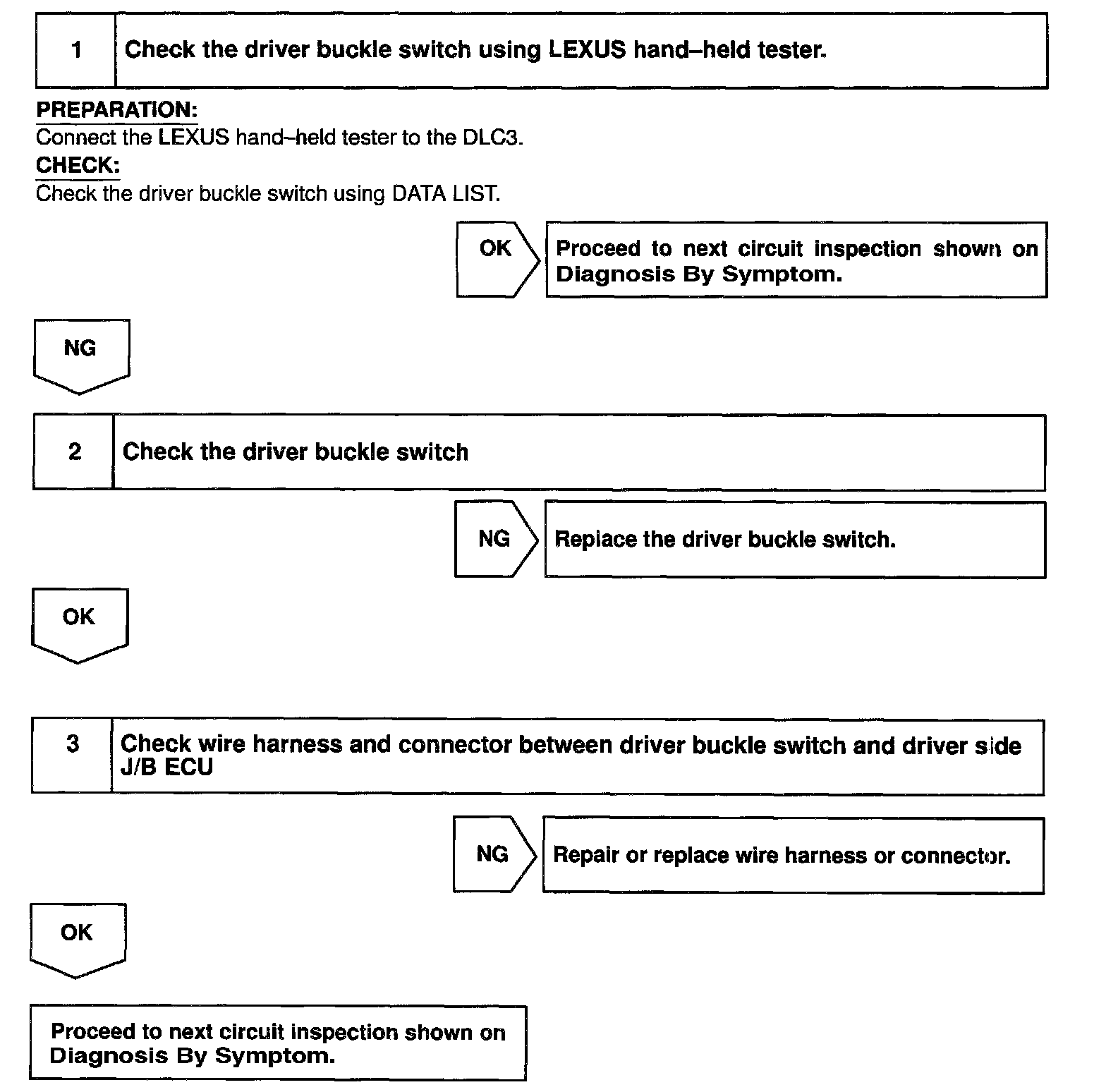 CIRCUIT DESCRIPTIONThis circuit detects the conditions of the driver buckle switch and makes the driver seat warning flash.