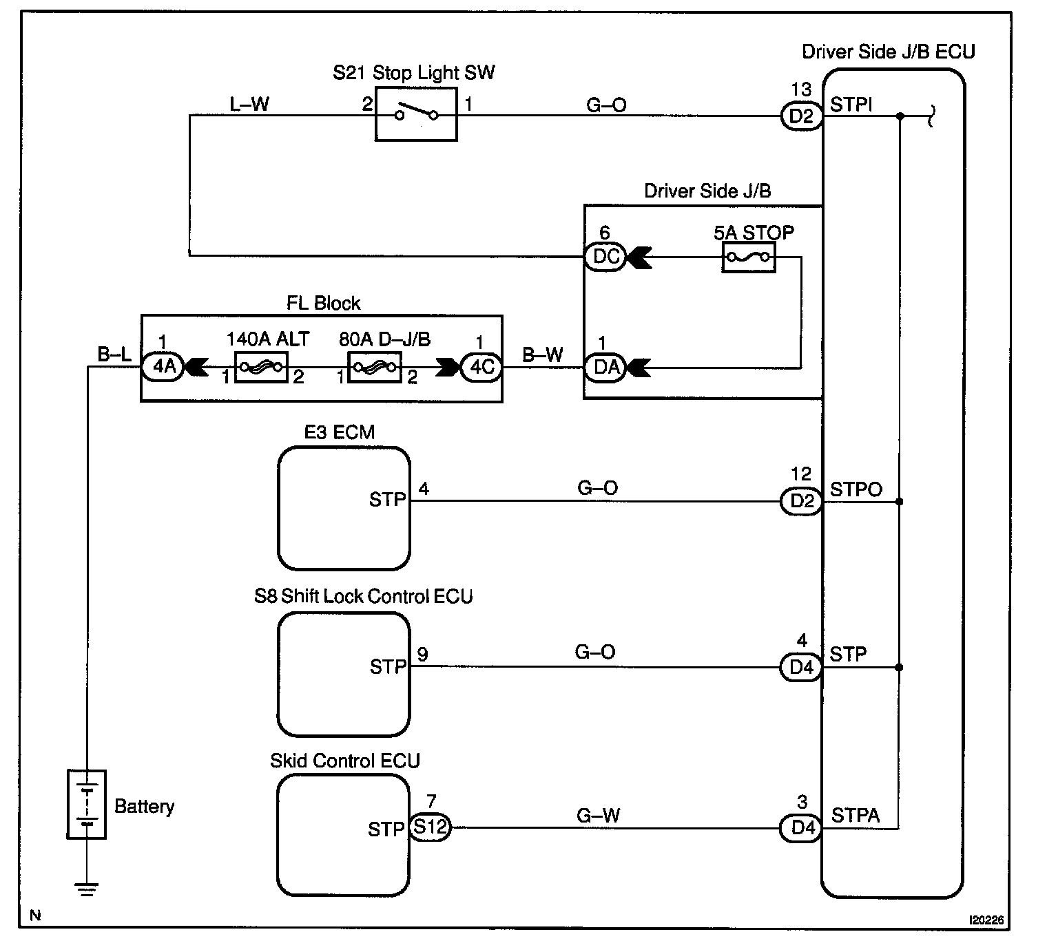 CIRCUIT DESCRIPTIONThis circuit detects the conditions of the stop light switch.