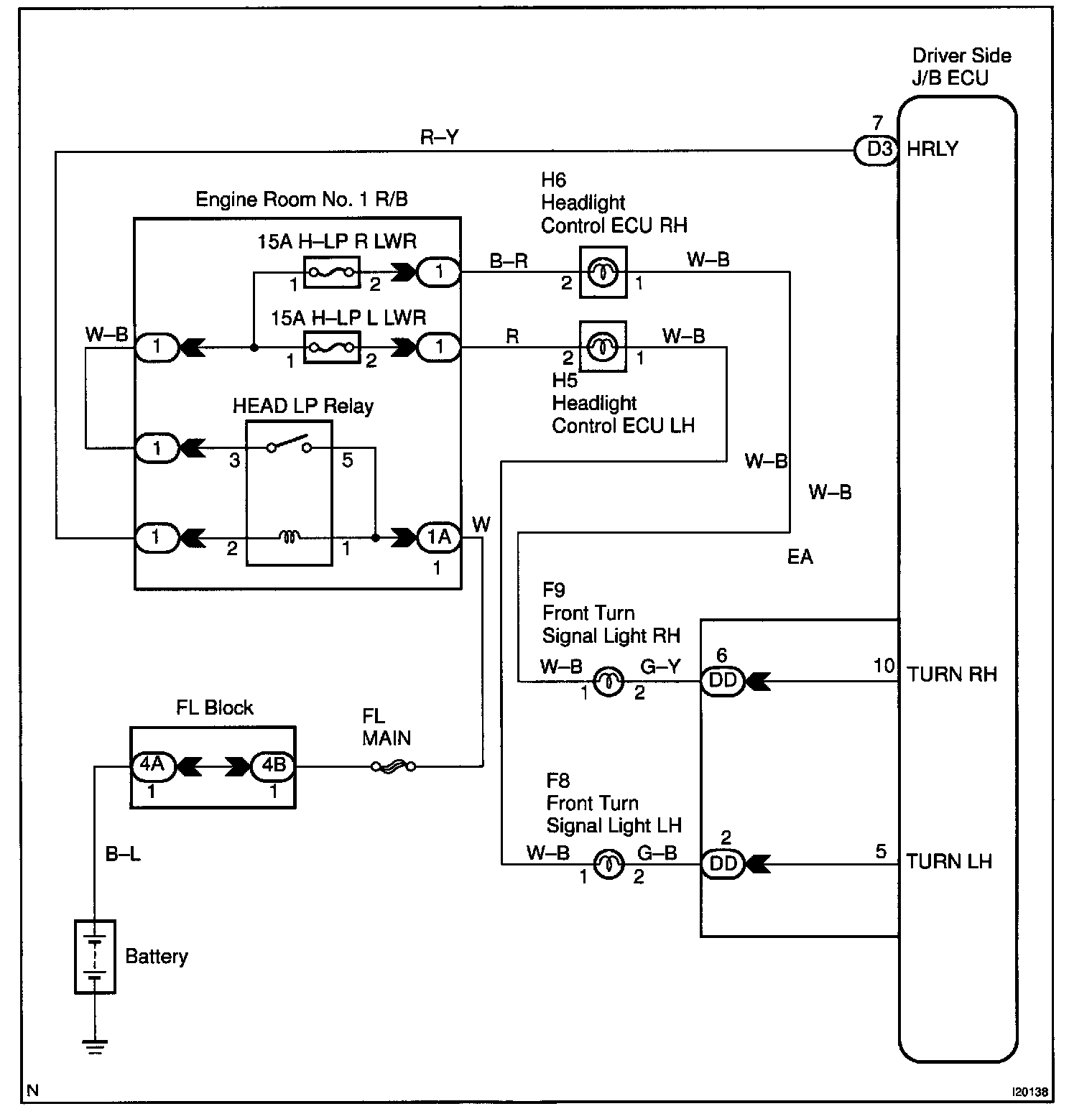 Receiving the signal of the turn signal switch from the Driver side J/B ECU, the Drier side J/B ECU makes the turn signal light come on.