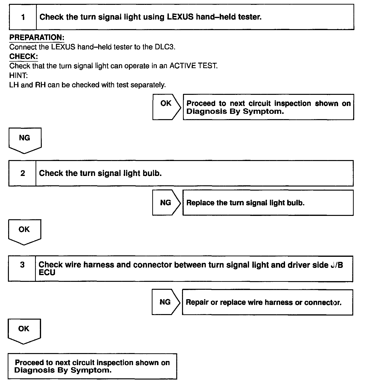Home >> Lexus >> 2001 >> LS 430 V8-4.3L (3UZ-FE) >> Repair and Diagnosis >> Powertrain Management >> Computers and Control Systems >> Body Control Module >> Testing and Inspection >> Component Tests and General Diagnostics >> Body No. 2 Control System >> Turn Signal Light Circuit