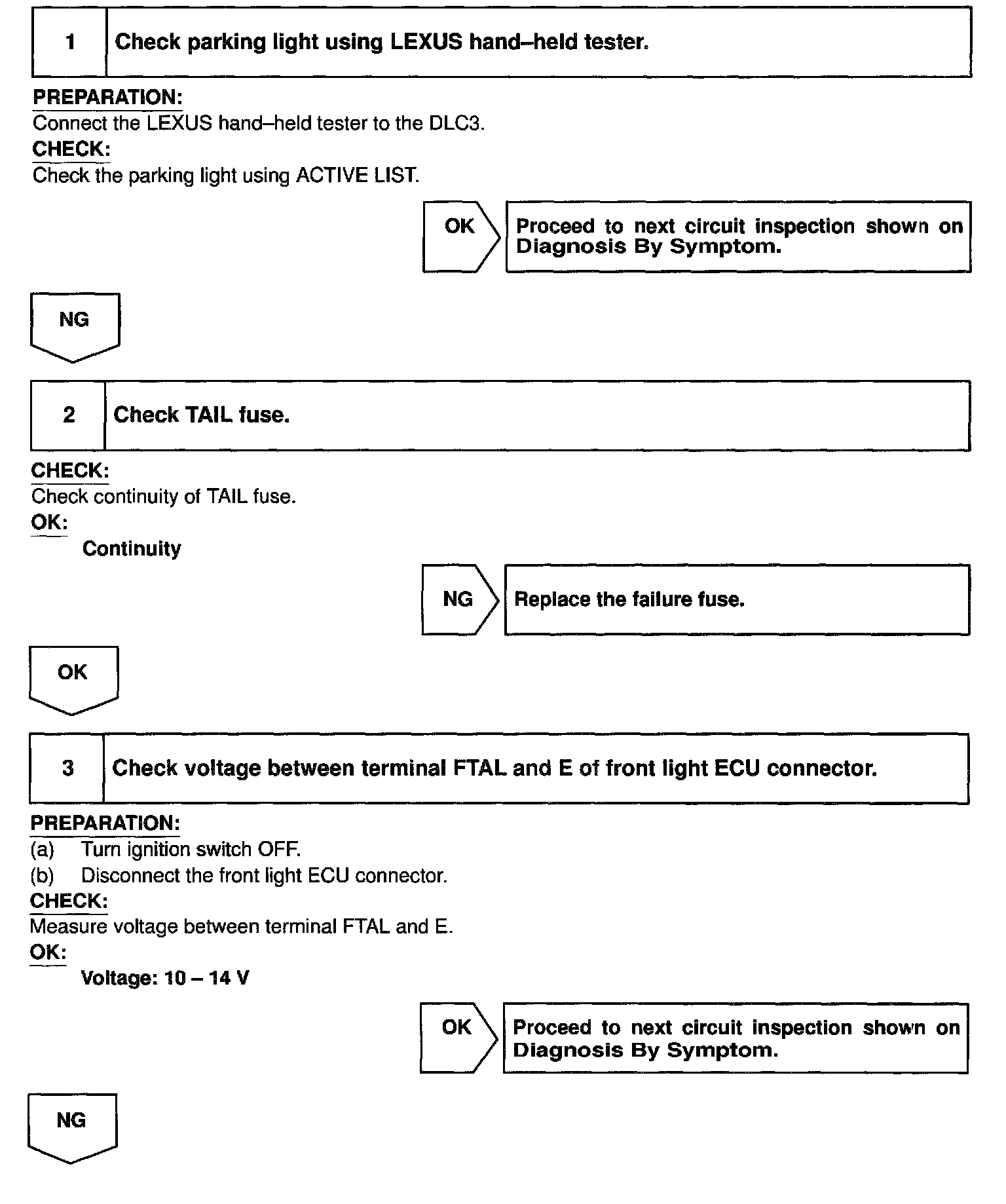 Front Light ECU receives turn signal switch information from the combination switch and lights the parking light.