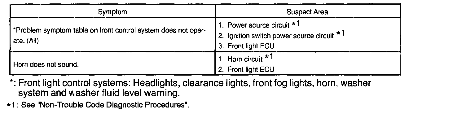 Problem Symptoms Table:
