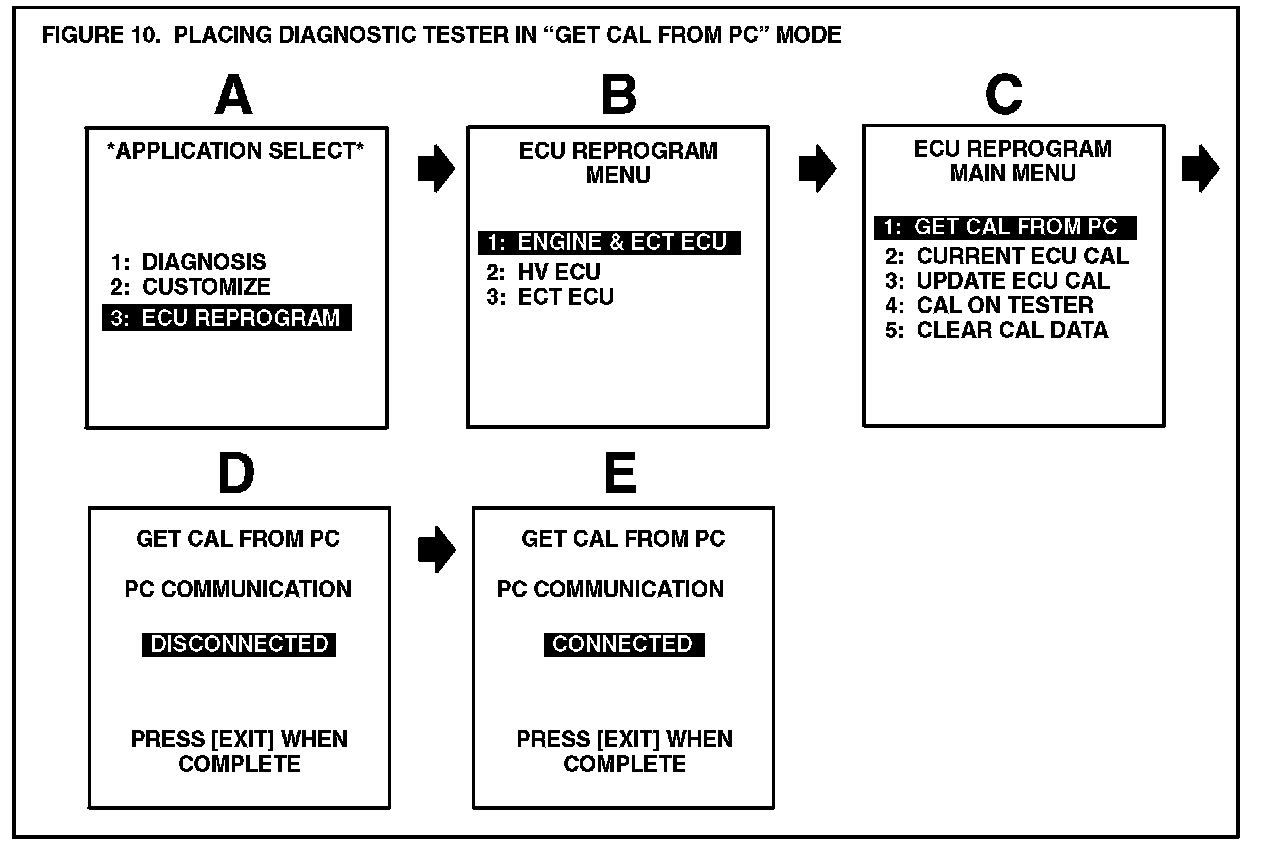 G. Place the Diagnostic Tester in the "GET CAL FROM PC" mode to receive the calibration file (Figure 10).