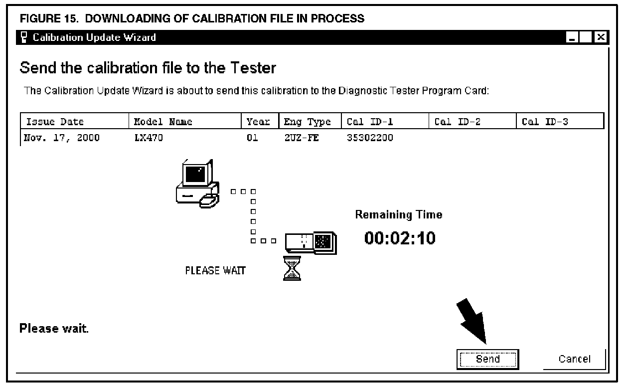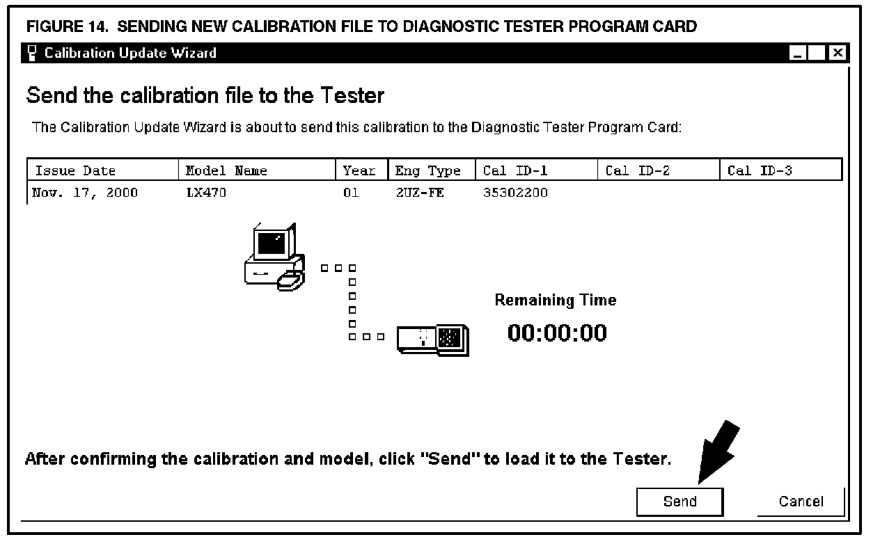 K. Confirm the calibration file to be sent to the Diagnostic Tester Program Card (Figure 14). Click SEND.