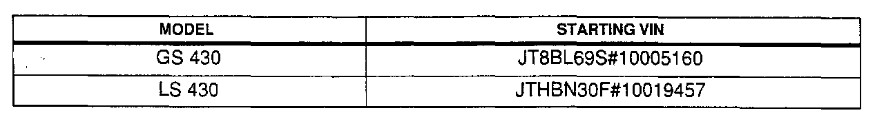 ^ 2001 model year GS 430 and LS 430 vehicles.
