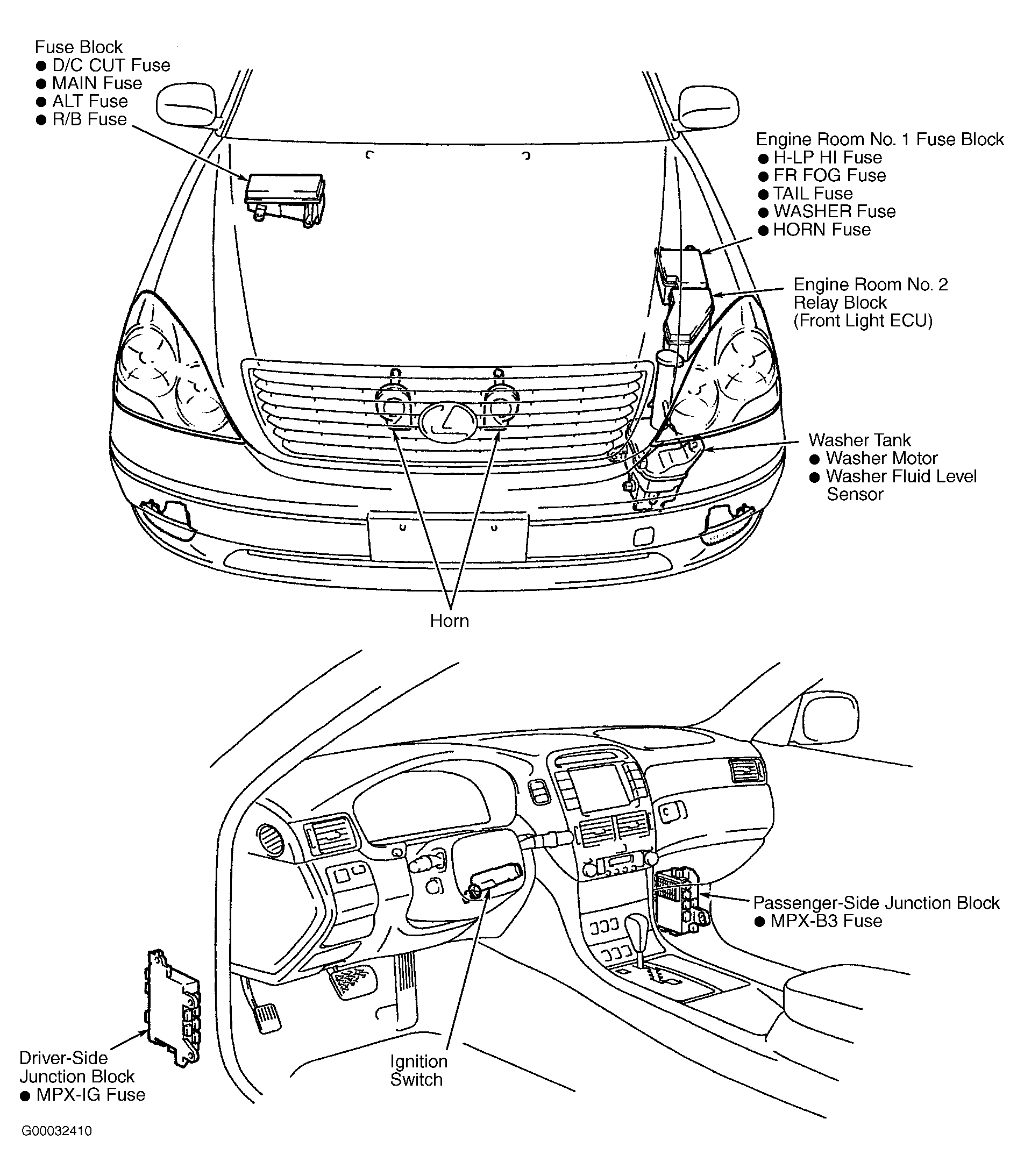 Fig 1: Identifying Driver-Side Junction Block (Body No. 2 ECU) Components