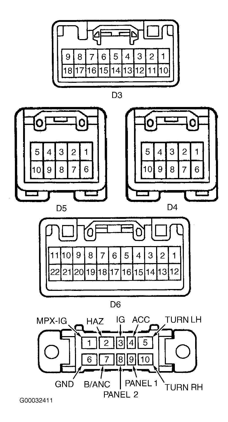 Fig 5: Identifying Body No. 3 ECU Connector Terminals