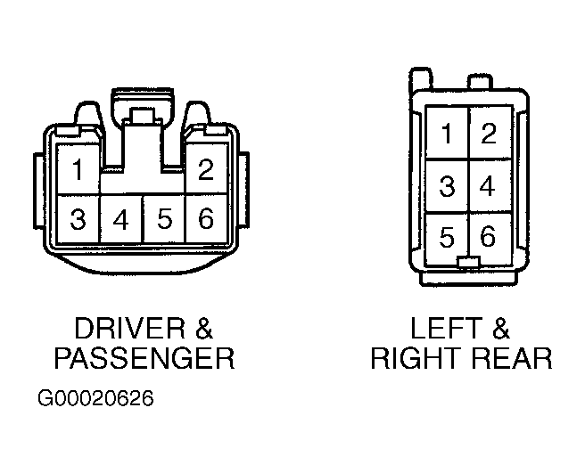 Disconnect window motor harness connector. Connect ohmmeter positive lead to window motor harness connector terminal No. 4 (Black/White wire) and negative ohmmeter lead to terminal No. 5 (Brown/Black wire). Apply positive battery voltage to terminal No. 1 (Red wire) and connect negative battery lead to window motor harness connector terminal No. 2 (Green wire). See Fig 1. Ensure continuity exists when window goes up, and does not exist when window is fully closed. If continuity is not as specified, replace window motor assembly.