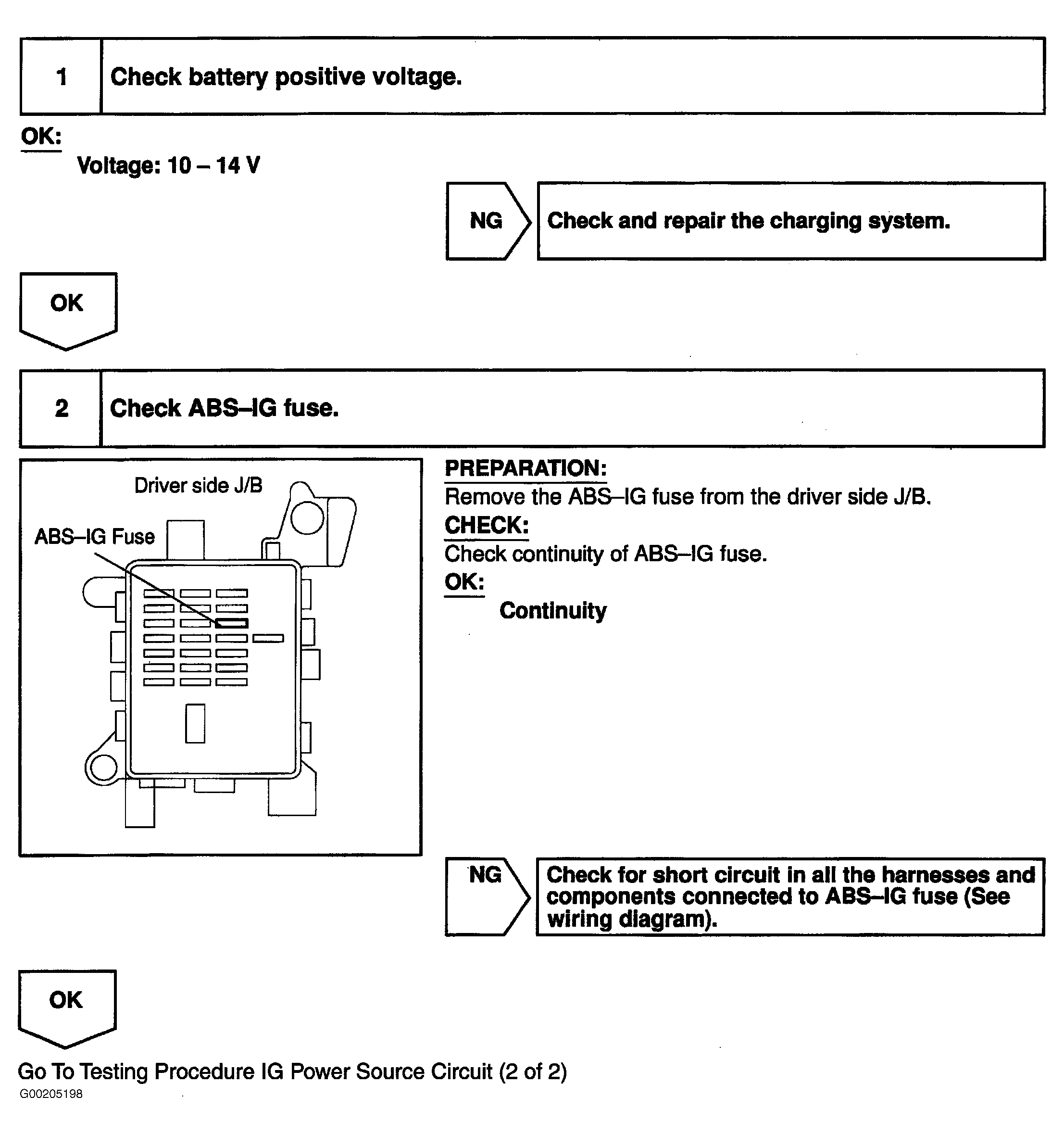 Fig 2: Testing Procedure IG Power Source Circuit (1 Of 2)