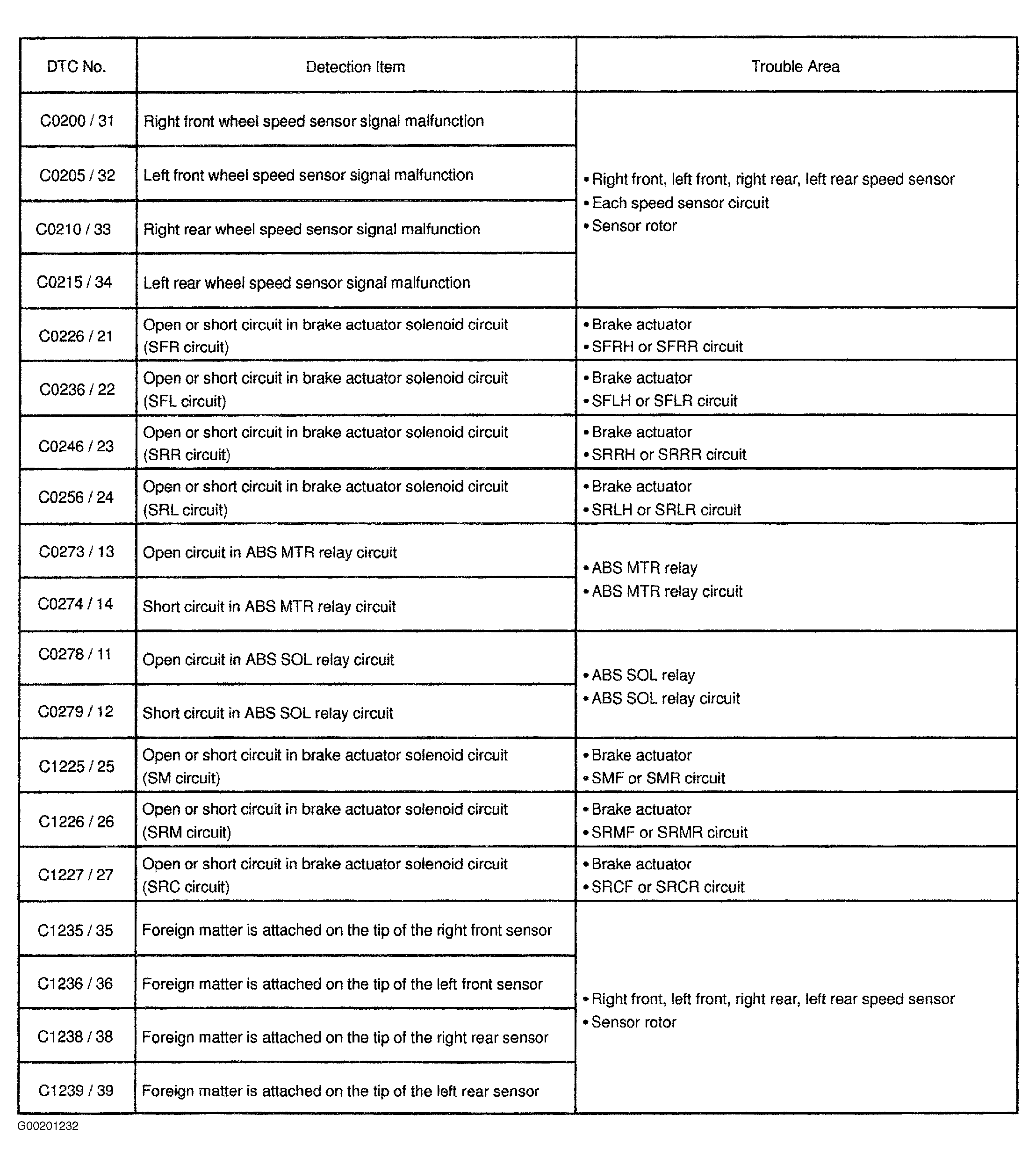 For ABS diagnostic trouble code definitions see