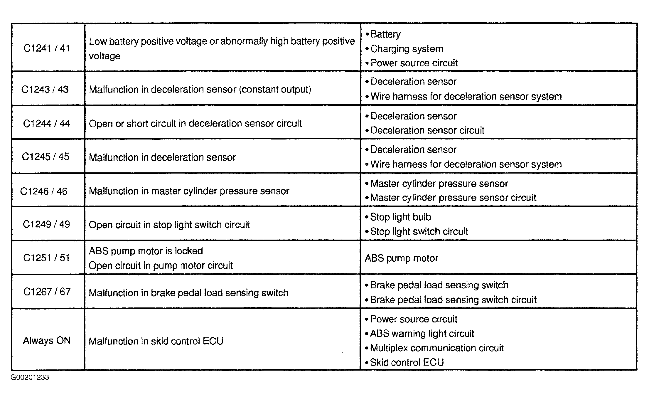 Diagnostic Trouble Code Definitions: Abs