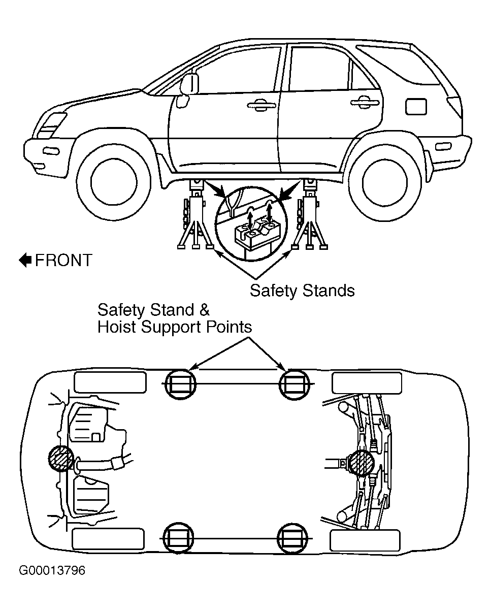 Home >> Lexus >> 2001 >> LS 430 >> Repair and Diagnosis >> Suspension >> Wheel Alignment >> Specifications & Procedures >> Jacking & Hoisting >> Emergency Jacking