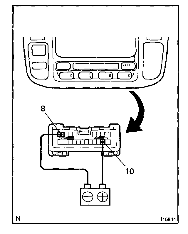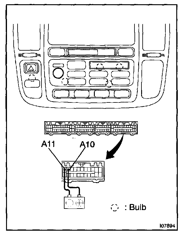 a. Connect the positive (+) lead from the battery to terminal A-10 and negative (-) lead to terminal A-11 then check that the illuminations lights up.
