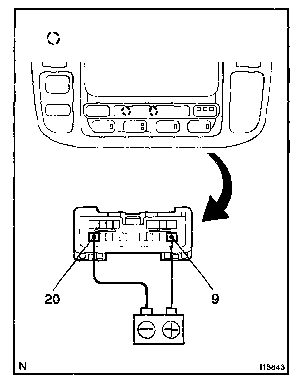 a. Connect the positive (+) lead from the battery to terminal 9 and negative (-) lead to terminal 20 then check that the illuminations lights up.