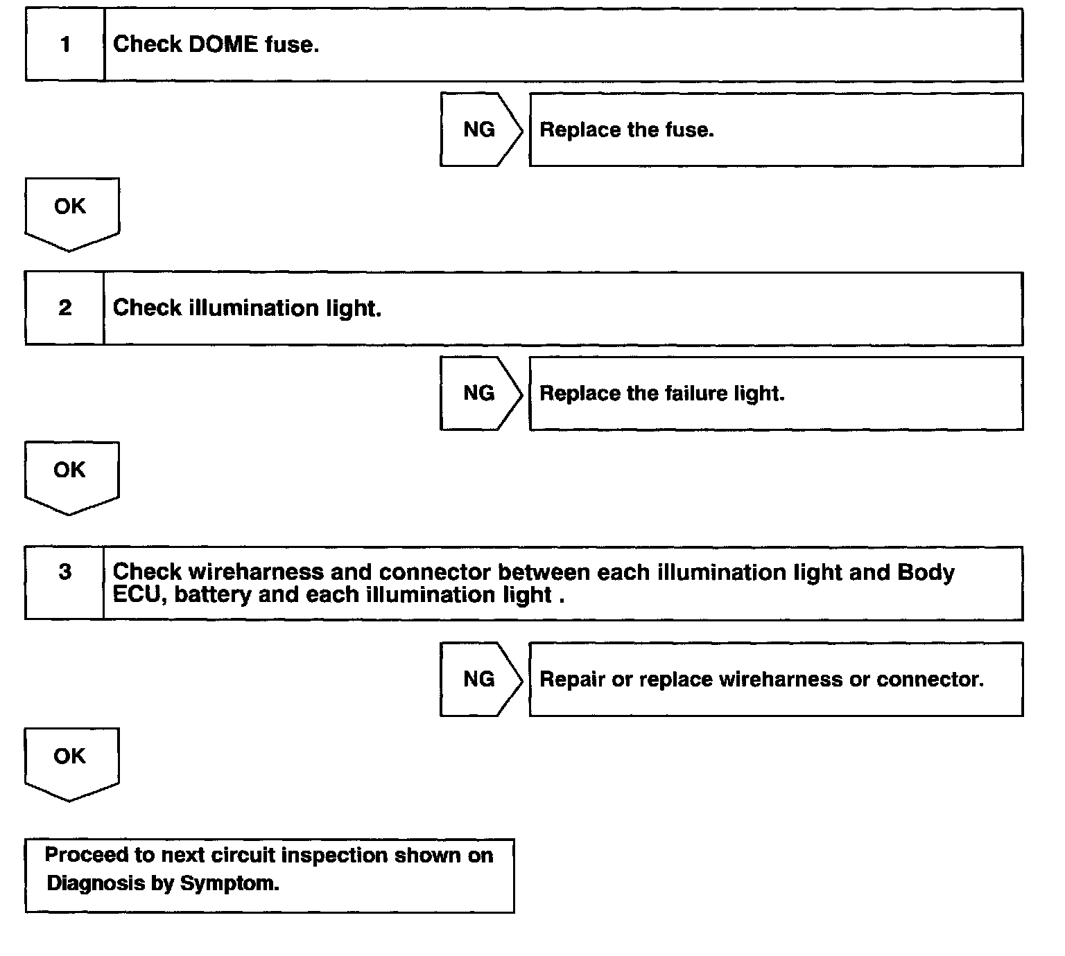 Receiving the courtesy signal from the Body ECU will make the interior light, ignition light, and courtesy light come on.