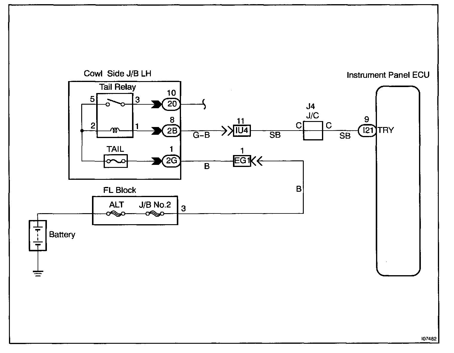 Home >> Lexus >> 2001 >> LX 470 V8-4.7L (2UZ-FE) >> Repair and Diagnosis >> Powertrain Management >> Computers and Control Systems >> Body Control Module >> Testing and Inspection >> Component Tests and General Diagnostics >> Taillight Relay Circuit