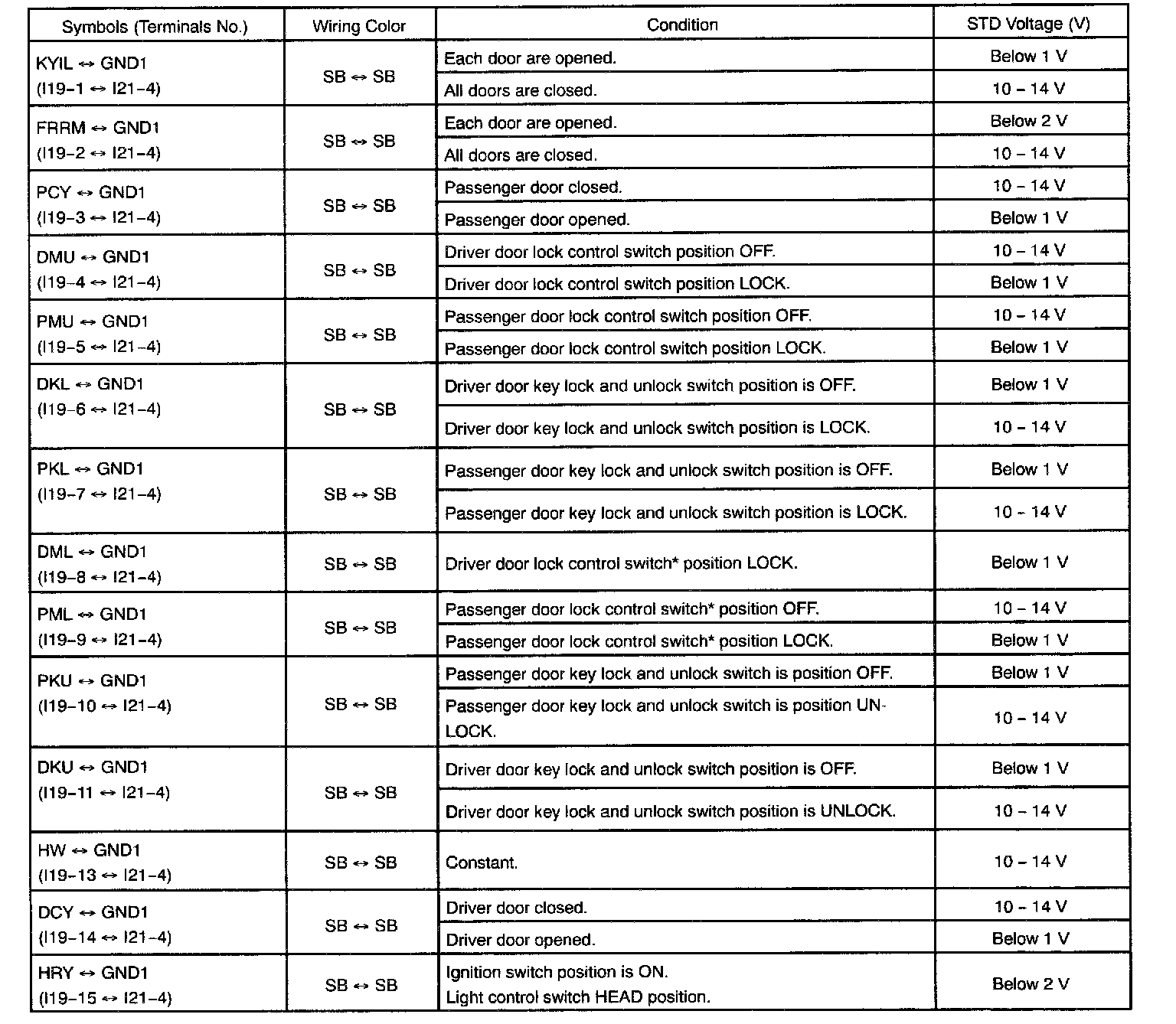Pinout Values and Diagnostic Parameters