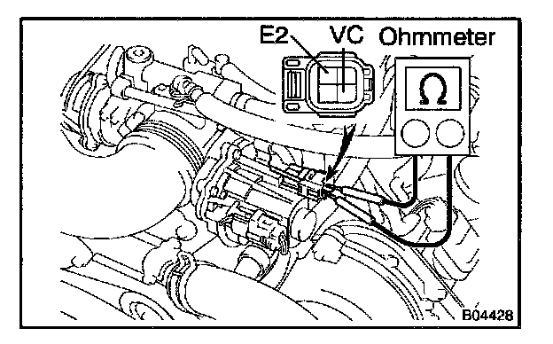 b. Using an ohmmeter, measure the resistance between terminals VC and E2.