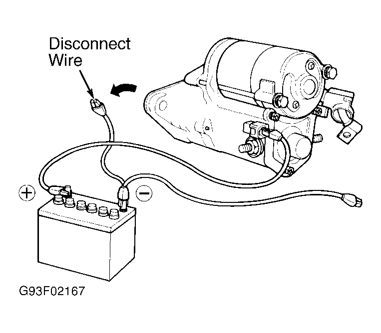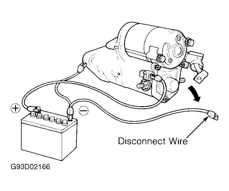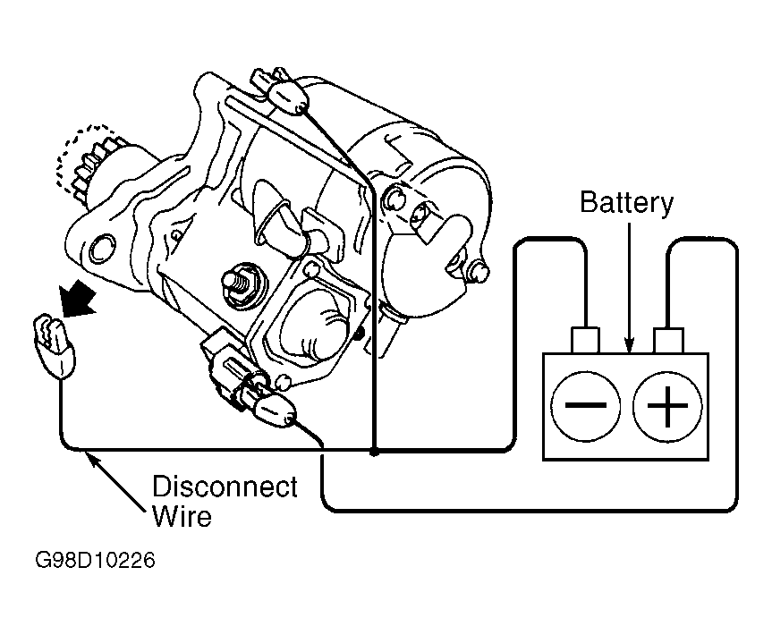 Disconnect jumper wire from negative battery terminal to starter housing. See Fig 3 or Fig 6 . Pinion gear should now retract. If it does not retract, replace solenoid.