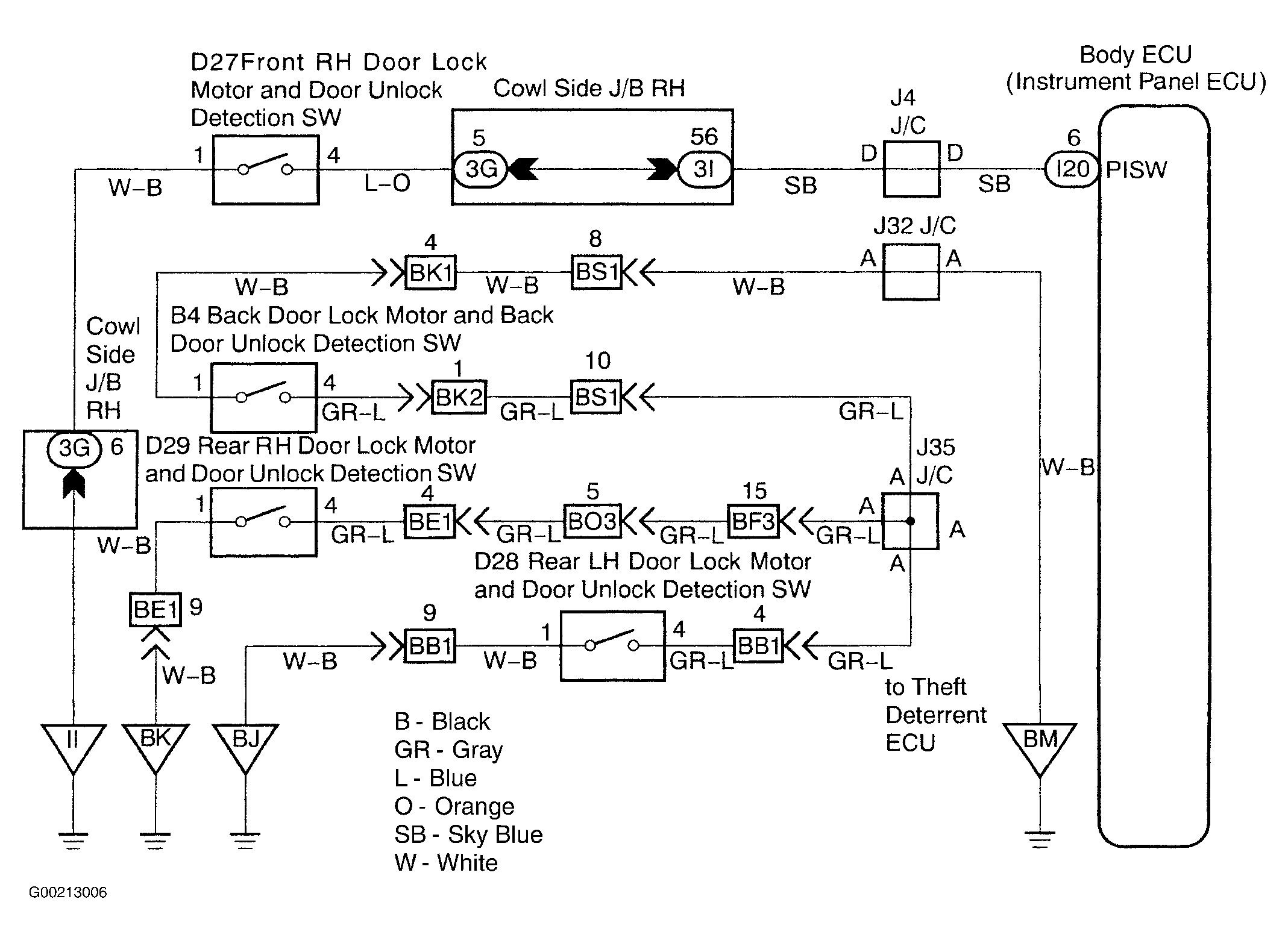 The door unlock detection switch is built in the door lock motor assembly. This switch is ON when the door lock knob is in the unlock position and OFF when the lock knob is in the lock position. The ECU detects the door lock knob conditions is this circuit. It is used as one of the operating conditions for the key confinement prevention function. See Fig 1.