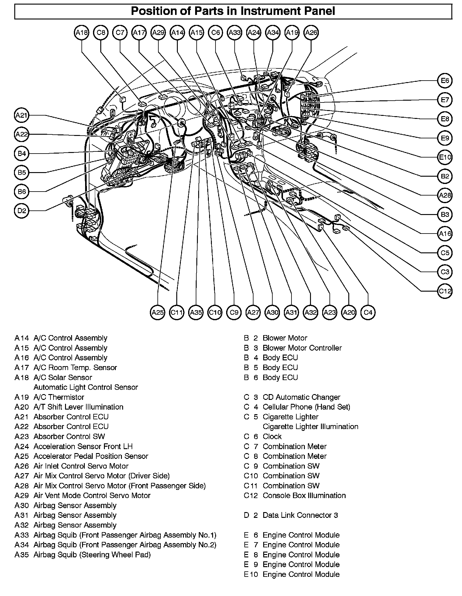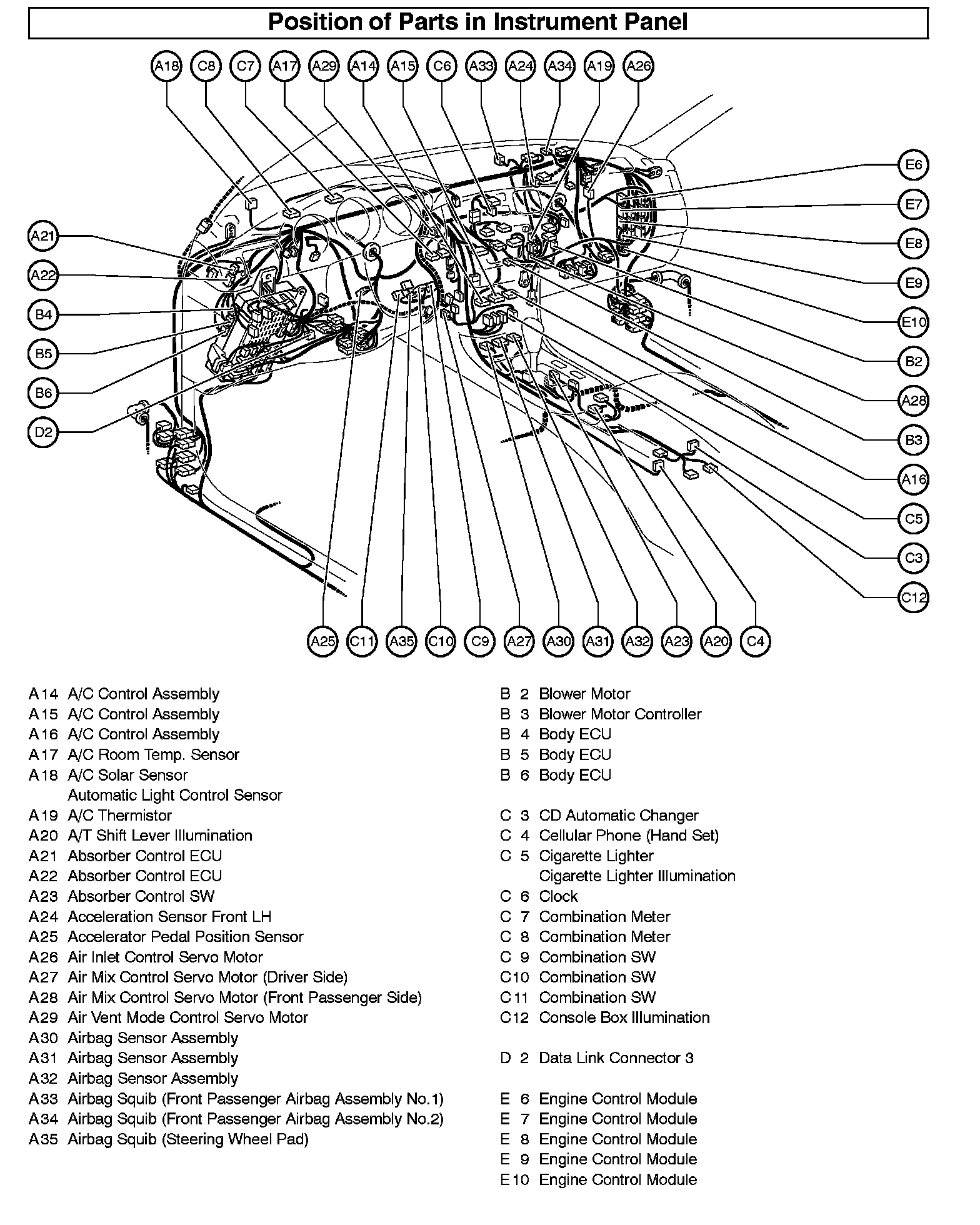 Position Of Parts In Instrument Panel Part 1: