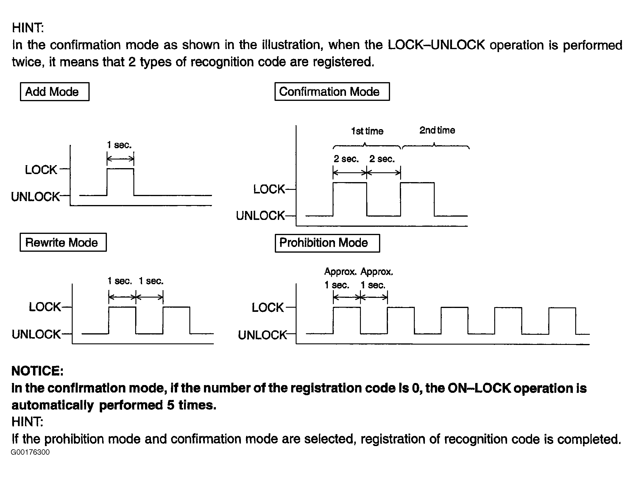 - Multiplex communication system (MPX) body ECU automatically performs the LOCK-UNLOCK operation within 3 seconds to inform the operator of a selected mode. See Fig 2.