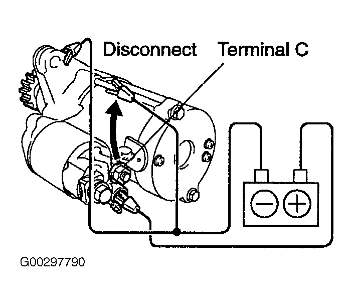3. Disconnect the negative lead from terminal "C". See Fig 2. Verify that the pinion gear remains out.