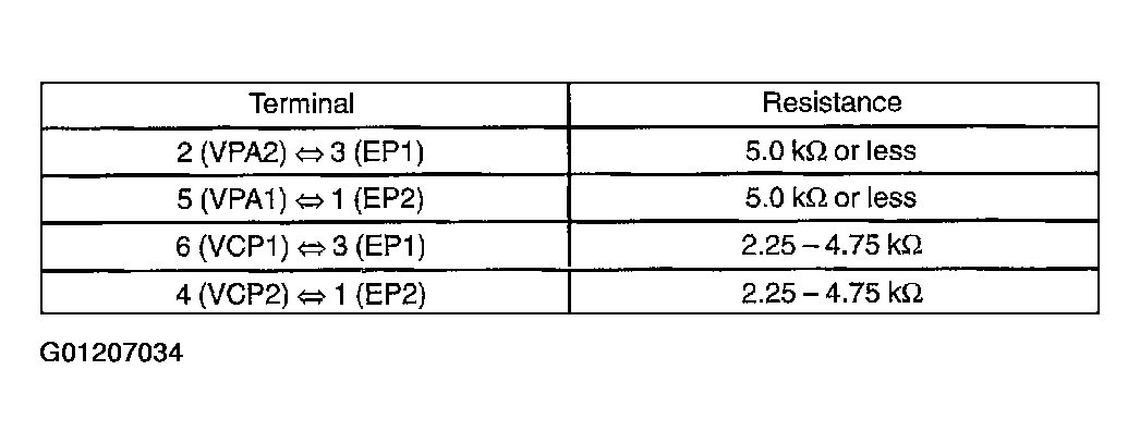 1. Using an ohmmeter, measure the resistance between terminals 1 (VC) and 4 (E2).