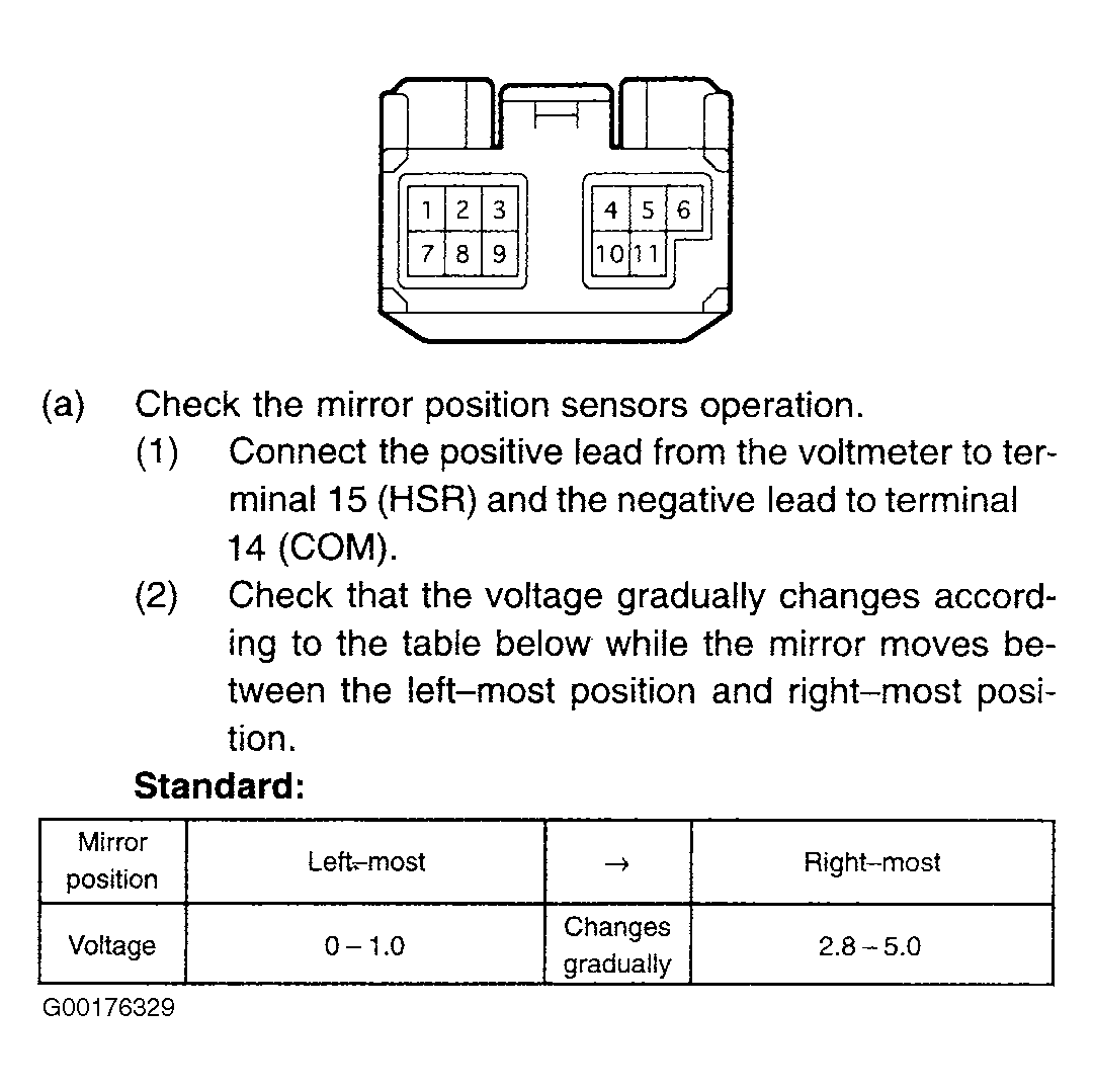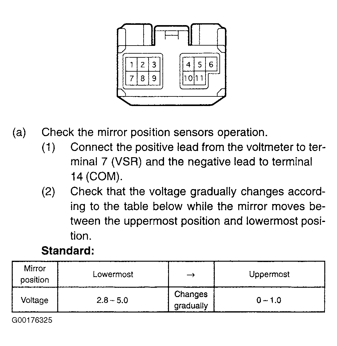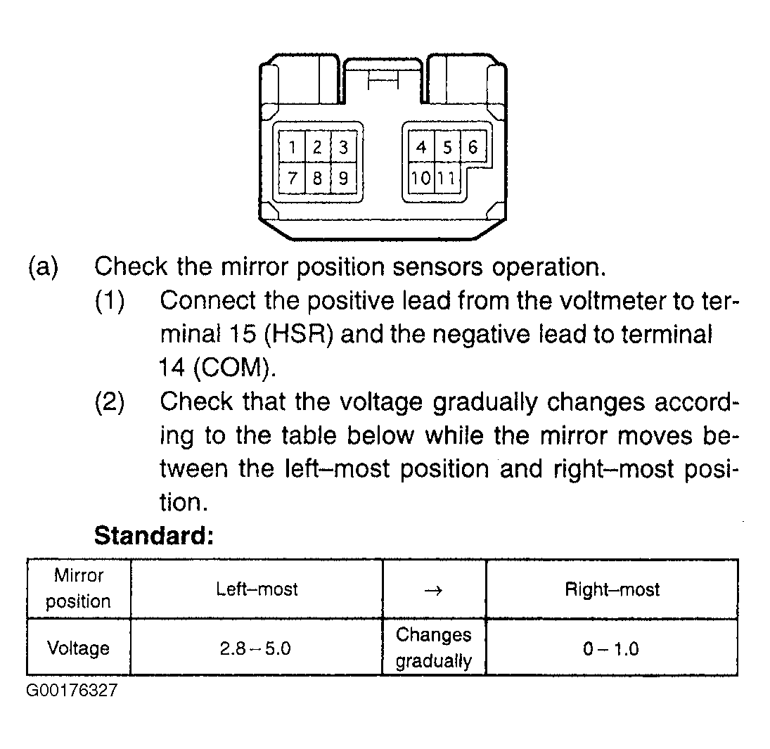 - Check the left hand outside rear view mirror assembly lowermost and uppermost positions operation. See Fig 1. If the operation is OK, go to the next step. If the operation is not OK, replace the left hand outside rear view mirror assembly. See OUTSIDE REAR VIEW MIRROR ASSEMBLY .