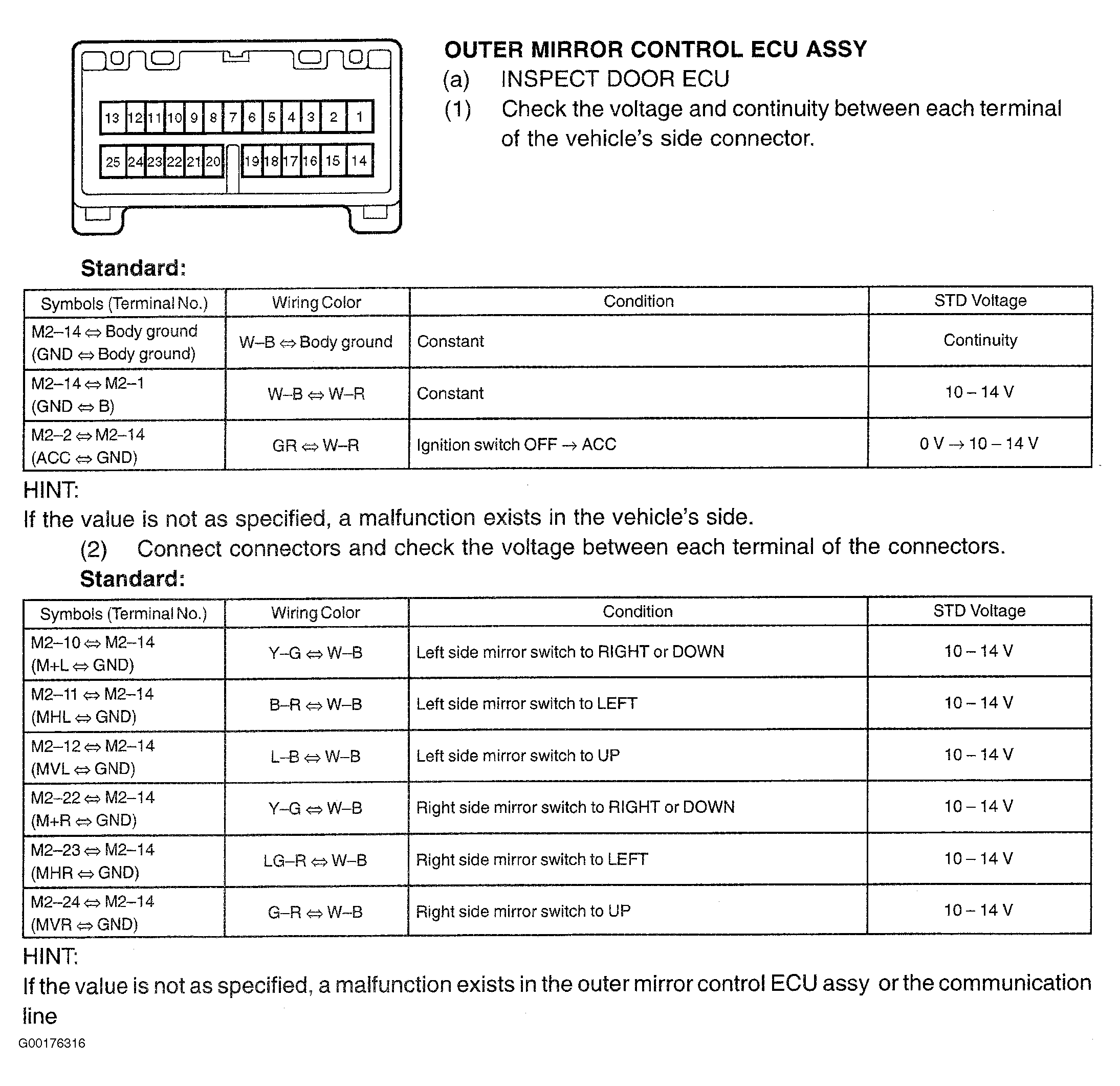 Fig 1: Inspecting Outside Rear View Mirror Control ECU Continuity & Voltage