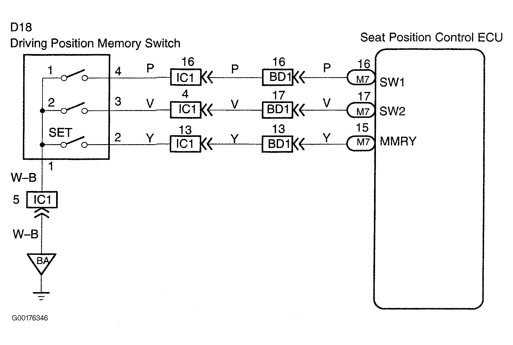 - Inspect the seat memory switch. See Fig 2. If the results are OK, go to the next step. If the results are not good, replace the seat memory switch.