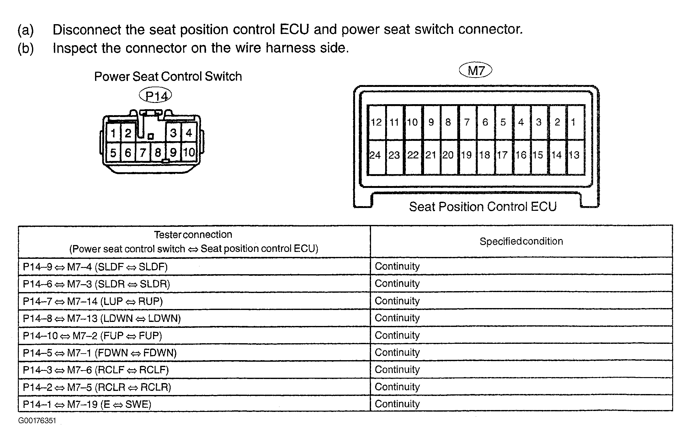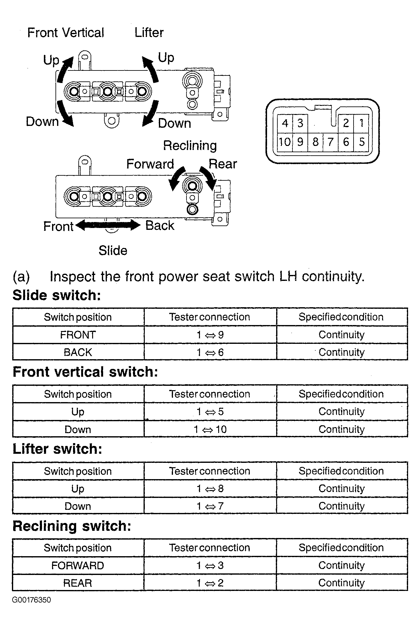 - Inspect the power seat control switch. See Fig 2. If the continuity is OK, go to the next step. If the continuity is not good, replace the seat control switch. See POWER SEAT SWITCH under REMOVAL & INSTALLATION.