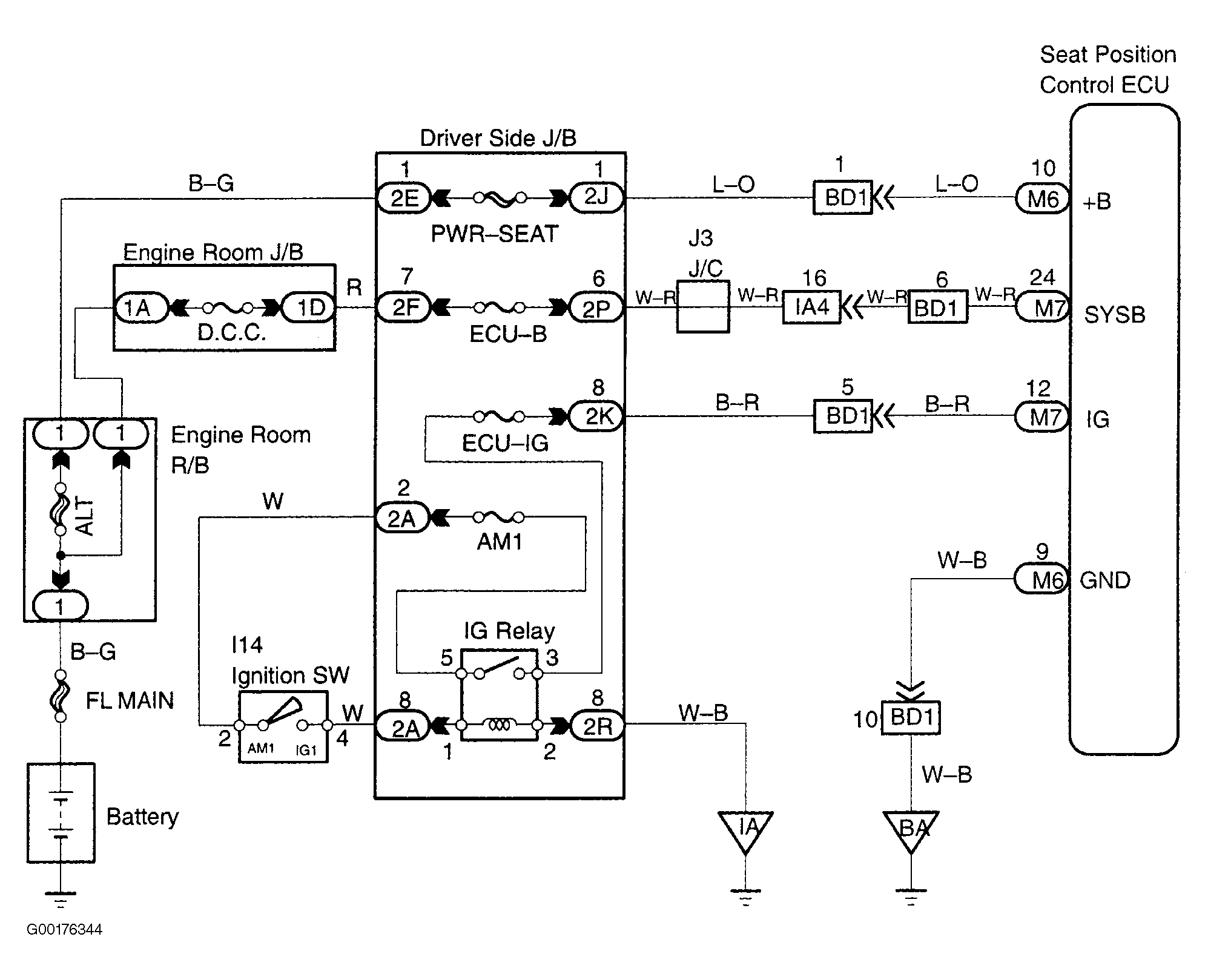 - Check fuses. Check whether PWR-SEAT 30A fuse, ECU-B 10A fuse and ECU-IG 10A fuse operate normally. If the fuses are OK, go to the next step. If the fuses are not good, replace the fuses.