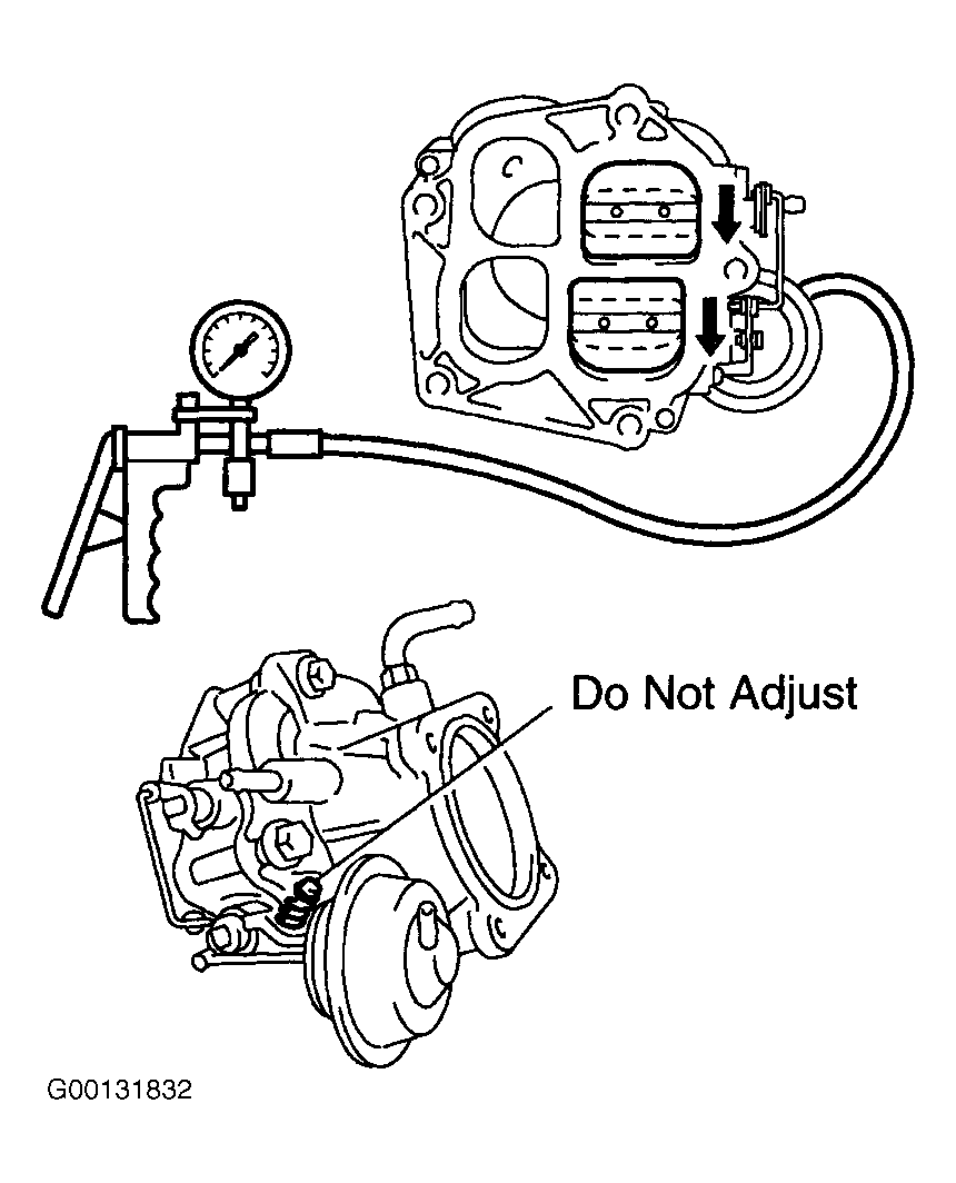 With 7.9 in. Hg (26.7 kPa) of vacuum applied to actuator, ensure actuator rod moves. One minute after applying vacuum, check that actuator rod does not return. See Fig 1. If operation is not as specified, replace intake air control valve assembly.