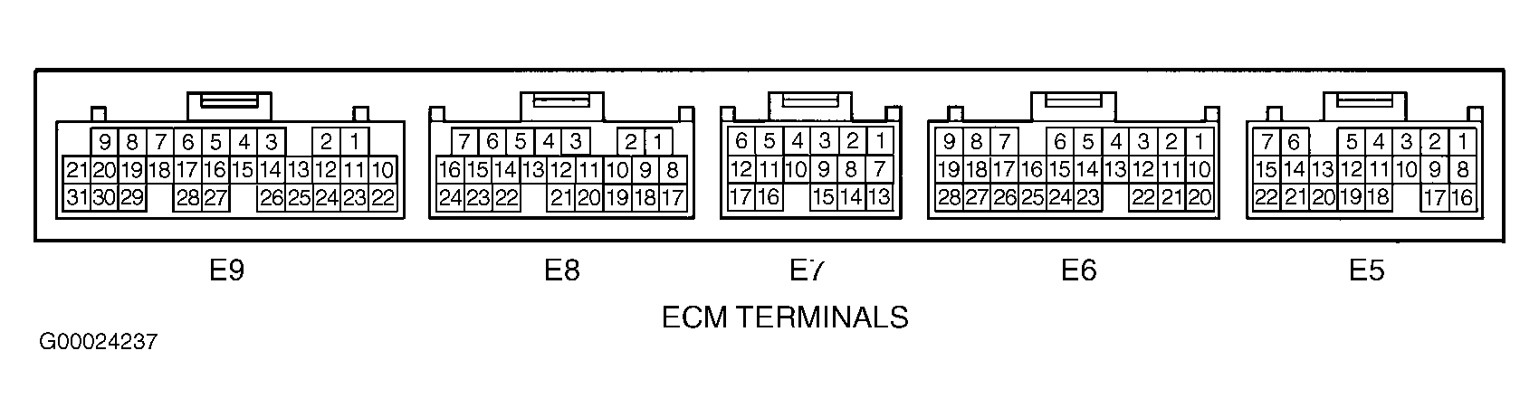 - Check for an open circuit in Brown wire between ground and terminal 17 at ECM E8 connector. See WIRING DIAGRAMS