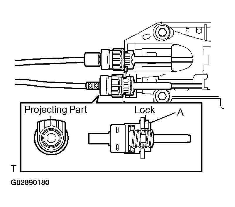 - Turn the lock and separate the select cable from the shift lever retainer.