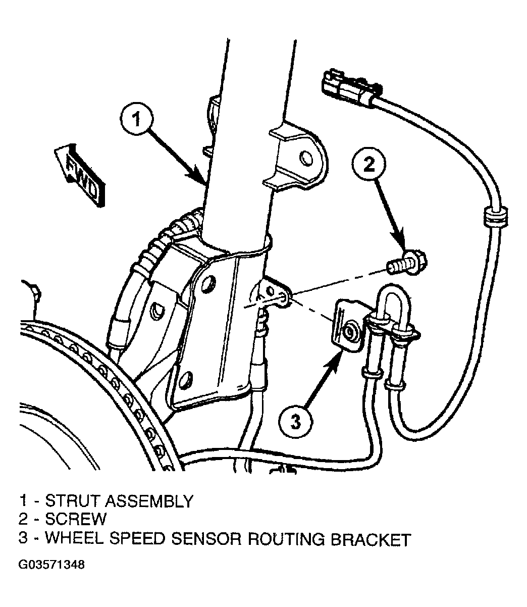 - Attach wheel speed sensor routing bracket to strut assembly (Figure ). Tighten screw to 13 N.m (115 in. lbs.) torque.