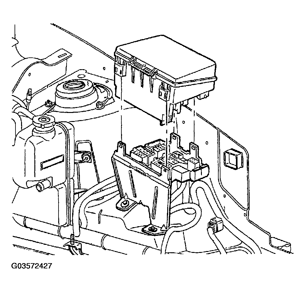 - Remove the hood cable retaining clip near the Integrated Power Module (IPM).