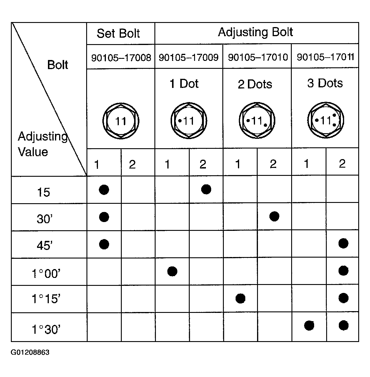 Fig 13: Camber Adjusting Bolt Identification & Specification Chart