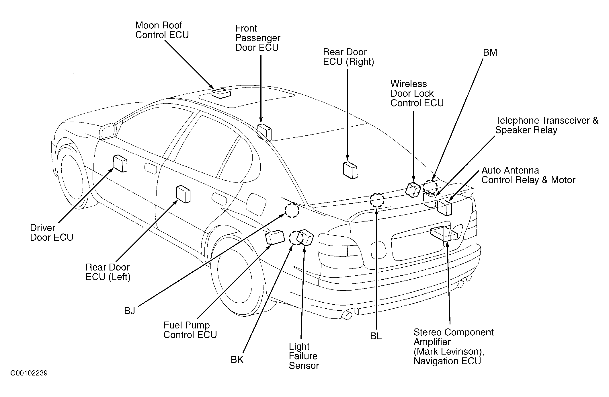 Navigation ECU At right rear corner of luggage compartment. See Figure.