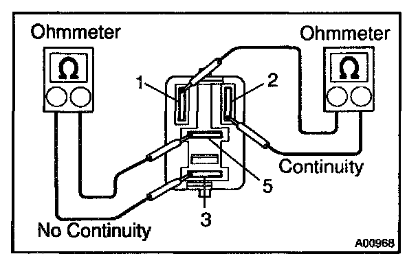 2. Using an ohmmeter, check that there is continuity between terminals 3 and 5.