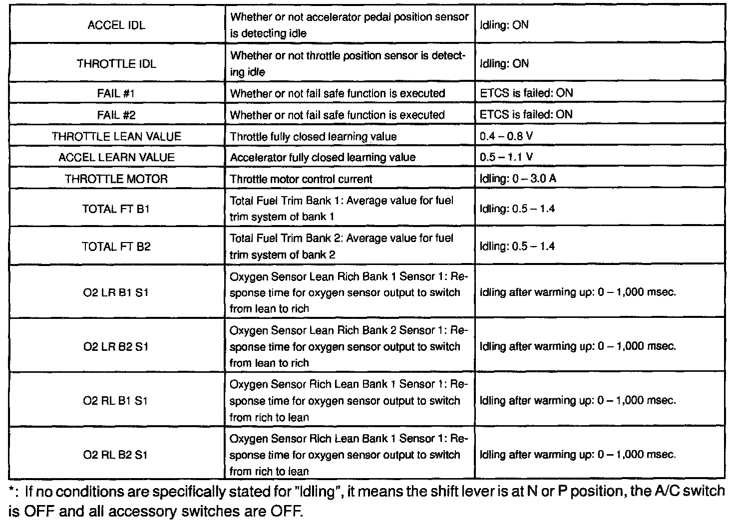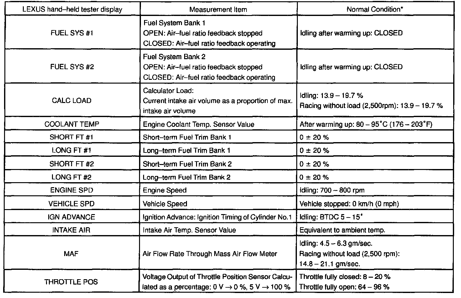 ENGINE OPERATING CONDITIONNOTE: The values given for "Normal Condition" are representative values, so a vehicle may still be normal even if its value varies differ from those listed here. So do not decide whether a part is faulty or not solely according to the "Normal Condition" here.