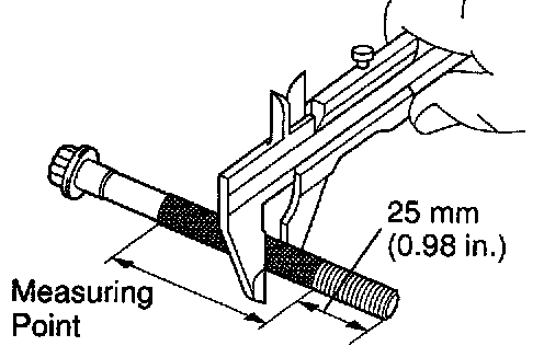 c. Using vernier calipers, measure the thread outside diameter of the cylinder head bolt.