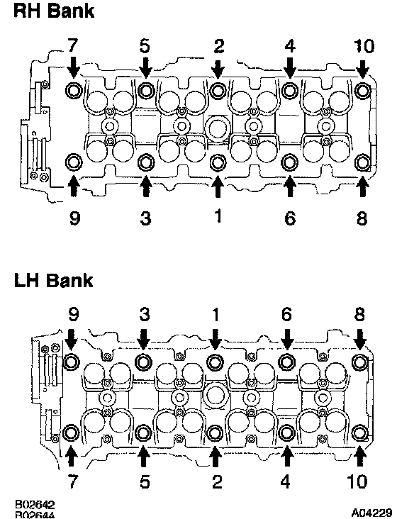 e. Retighten the cylinder head bolts by 90° in the numerical order shown.