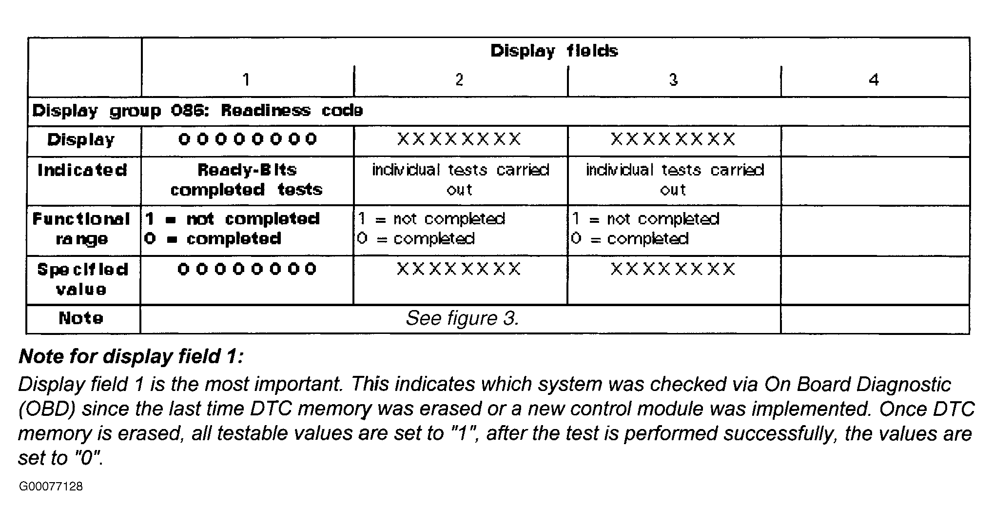 Fig 1: Display Group 086: Readiness Code