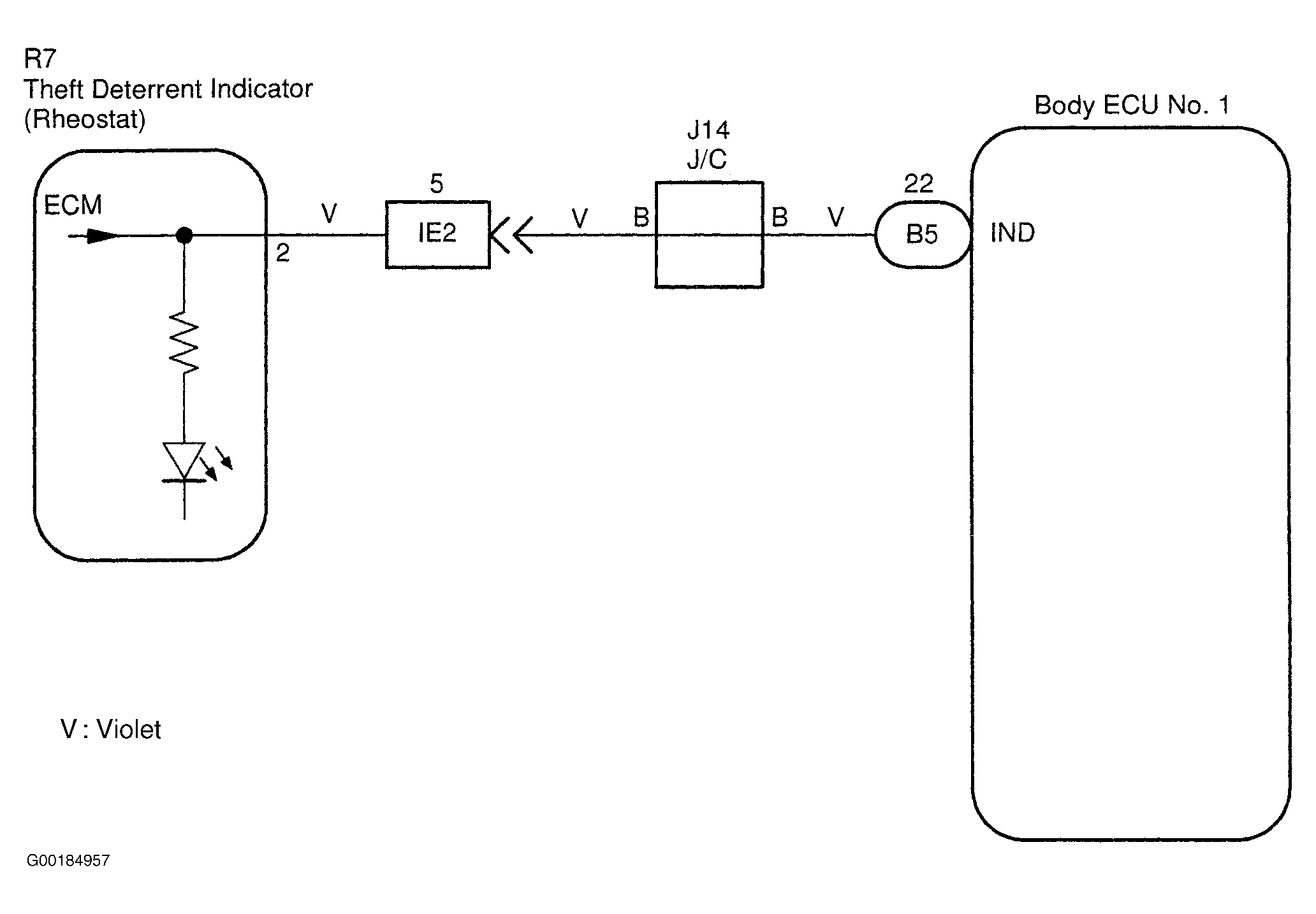 3. Check for short to power, short to ground and continuity in the wiring harness and connector between the anti-theft indicator and body ECU No. 1. If the results are OK, perform the next test procedure of the problem symptom. See BODY ECU NO. 1 PROBLEM SYMPTOM INDEX  table. If the results are not OK, repair or replace the wiring harness or connector.