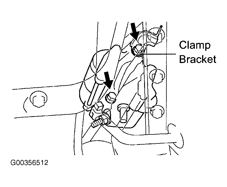 5. To install, reverse removal procedure. Tighten starter bolts to specification. See TORQUE SPECIFICATIONS . When installing upper mounting bolt, ensure it is installed with clamp bracket. See Fig 1.